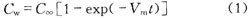 式中:Cw为t时刻材料吸收水分子的浓度;C∞为材料吸收水分子的饱和浓度;Vm为材料吸潮速率常数。