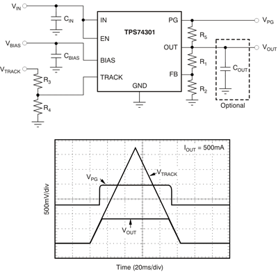 复杂数字系统需要的另一项功能是电压追踪,许多处理器在CORE和I/O电源接脚之间的静电放电(ESD)架构往往有很大的压力,这项功能有助于降低这个压力。追踪功能使 LDO 输出电压能够追踪外部的电源。详细信息请见图 3。