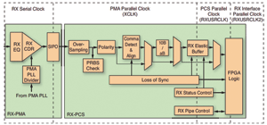 图1 Virtex-5 RX物理子层PCS、PMA和PMD示例方框图