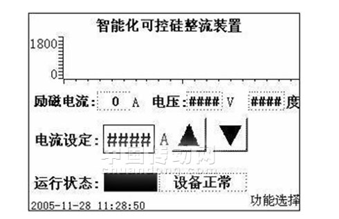 1600A/45V智能化可控硅整流装置中将PLC 和触摸显示屏结合在一起,并采用PLC 和触摸屏的相应软件对各采样值进行控制、处理,在温度、电流、电压的实时显示、数据记录、报警等方面具有很大的优越性。操作人员不仅能方便的观察和掌握该装置的实时运行温度,还可根据报警消息,快速的排除故障;借助历史记录,管理人员还可对重要数据进行分析、查询,可大大提高运行管理水平。目前该装置已在赣州市金环磁选设备有限公司得到应用。