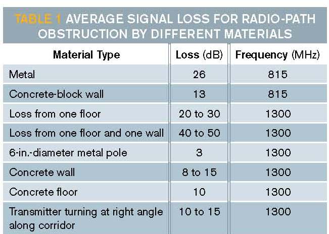 建筑物有许多不同的隔间方式,它们的实体和电气特性也差异很大,很难靠着通用模型来分析室内信道。但经由广泛的研究,业界已将常用材料的讯号损耗制成表格(表1)。