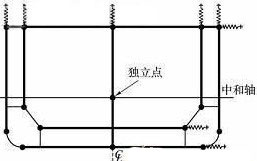 "SAFESHIP FOR TANKERS "系统通过施加给模型边界节点力来实现边界的弯矩,见图1。而剪力则以弹性支撑来代替,见图2。模型的平衡过程由系统自动完成。
