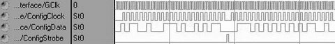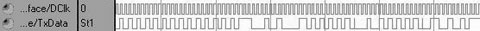 配置TR6903模式下仿真波形如所图 4示,以串行方式向TR6903写入6个字节的配置,改变TR6903工作频率,实现跳频。此时在ConfigClock的上升沿时从ConfigData送出10110010,00111010,01010110,00111010,10101010,10110010数据。Strobe为高时,ConfigClock停止。发送物理层帧部分仿真波形如图 5所示,以串行方式向TR6903发送物理层的帧。此时,先送出32位的0101…0101同步码,3个位的界字符111(TR6903检测到3个时钟周期以上的高电平),后面紧接是帧长及物理层负载。接收物理层帧部分仿真波形如图 6所示。TR6903在界定符发送完毕的较后一位,送出1个时钟周期高电平RxFlag信号;基带处理模块检测有效高电平,作为有效数据帧的开始,同时基带处理模块从LH引脚输出高电平,来响应TR6903。