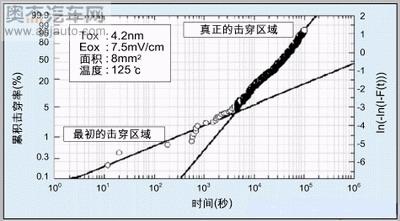问题是新工艺采用了高压应力测试进行评估。这类测试在取得氧化膜寿命的统计预测数据以及探测重要的制造与工艺难度方面很有效,但在建模和预测产品的早期故障方面收效甚微,特别是对于偶发性的故障。较初的击穿会在器件投入使用后很短时间内造成严重的故障后果(见图1)。