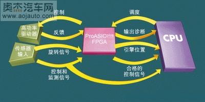 在ECU中,一般FPGA的主要功能是从机轴触轮信号中提取引擎的位置信息。FPGA会根据抽象的机轴角度发出CPU中断信号,而非传统设计应用的触轮齿位,因而提高了灵活性和精度。ECU通常会将燃料添加和点火动作编为定时的调度事件,并以调度代码执行时间的引擎工作状况为基础。在事件发生前改变引擎工作状态会引起角度误差,而调度代码往往与当前引擎的机轴触轮轮齿式样密切相关。FPGA能令调度代码不受信号式样影响,还能通过监测引擎工作状况来进行事件调度和持续调节,直至事件发生。此举能提升代码效率和灵活性,同时改善动态状况下的控制精度。而且,基于Flash的FPGA(如Actel的ProASICPlus)的上电运行功能,能助设计人员除去传统需要用来阻止燃料注射驱动器或点火线圈驱动器在上电期间启动的附加元件。