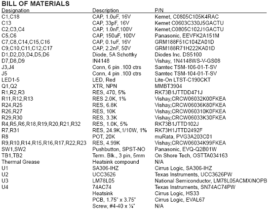 The DB64 demonstrates proper layout techniques for the SA306 high current switching amplifier. The economical construction uses only a two-sided PCB and allows the SA306