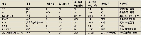 将某一应用系统中(或者分离的应用系统中)的各个嵌入式控制模块连接在一起的方法有很多。表1列出了几种主要的嵌入式系统接口的特性。(注:本文不讨论无线互连技术。)