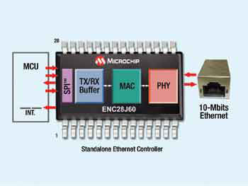 现在,我们可以在一个非常小的8位微控制器中就可以实现小容量板上RAM和18/14脚封装的单片以太网控制器。这些成本低廉的微控制器为新一代低成本的嵌入式应用发掘以太网技术和基础架构打开了方便之门。
