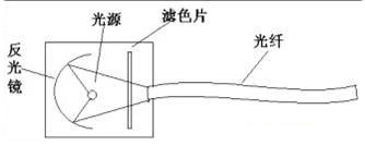 太阳能光纤灯是利用太阳能作为能源,直接地把太阳光引入室内进行照明,再通过光纤系统进行照明,光纤照明系统是由光源、反光镜、滤色片及光纤组成,如下图所示: