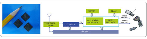 LGS-8G75是高度集成的完全支持中国数字电视地面广播传输标准(GB20600-2006)的解调芯片。此产品将模数转换ADC,TDS-OFDM解调器和时域解交织存储器集成于144脚BGA封装的单芯片。其设计用于地面数字电视单载波和多载波的接收,支持高清及标清电视和其它多媒体服务的广播传输。LGS-8G75适合于低功耗小尺寸的应用平台例如移动媒体播放器(PMP), 手机, USB电视棒和笔记本。