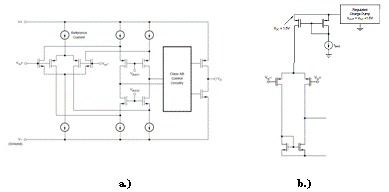 图 1 互补输入级、单电源放大器:a)。