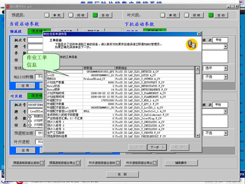 MES 系统通过OPC 下达子工单信息、工艺参数到缓存区,混丝中控通过缓存区获取上述信息,并完成制丝生产。当生产完成后,通过缓存区中另一数据结构将子工单结束信息上传到MES中。为了防止数据共享冲突,MES与缓存区之间的数据通讯采用约定好的通讯控制机制。根据缓存区标志位,当缓存区子工单还未启动执行时, MES系统可根据需要修改缓存区中还未被制丝管控系统执行的子工单,修改包括删除及更改。与MES系统通讯交互的集成画面如下:通过OPC方式,MES系统把工单发布到IO服务器上,集中监控系统通过采集IO服务器上的数据读取工单任务信息,开始组织生产。