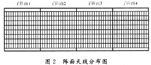 波控运算板基本用途就是为满足阵面天线单元控制的需要。在此,整个天线阵面等分成四个子阵面。每个子阵面包括a×b个天线单元,如图2所示。