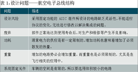 由于竞争的压力和对较佳战斗性能无止境的追求,军用航空电子从简单、独立的设备发展到如今以每秒百万位乃至更快的速度交换信息的高级智能系统网络。这也带来了必须克服的许多设计问题(见表1)。