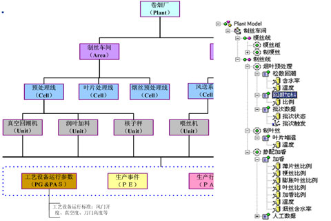 MES应用服务器包含两大部分内容,一部分是PA服务,一部分是SQL server数据服务。PA服务主要完成对企业的业务建模、业务流程、业务功能的实现。SQL server数据服务,是用于存储业务数据和控制数据。业务建模除了能够满足ISA-SP95界定的企业模型,并且可以对生产事件和生产活动进行灵活的建模处理,使静态生产模型与动态的实物模型实时同步。业务建模可直观的理解如下。如下图: