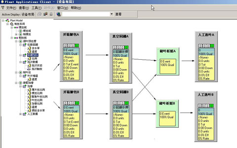 - Proficy Plant Applications Administrator提供建模功能,用于构建基于SP95标准的虚拟数字工厂――工厂模型。该工厂模型能够把现实虚拟,在计算机中反应生产现场的生产资源,包括生产车间,生产线,生产单元,生产参数,质量参数,过程参数,以及各种标准、事件(换牌、停机、启动)、以及事件行为等。实际生产时,通过生产现场数据(来自Proficy Historian)触发相应的事件,并启动相应的生产行为,同步虚拟和现场的生产节拍完成生产运行监控和管理,将生产现场在计算机中虚拟过的对象进行展现,从而实现生产的监控与追踪,生产历史的回溯。