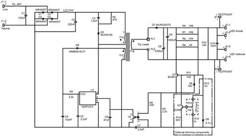图2:NCP1014LEDGTGEVB电路图