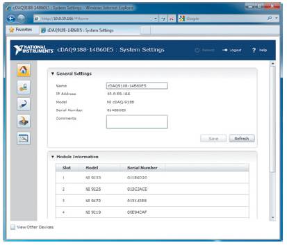 图3. 用户可以通过网络浏览器连接到cDAQ-9188底座内嵌的网页服务器,对NI ComapctDAQ系统进行远程配置和管理