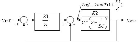 这篇《电源设计小贴士》是《电源设计小贴士 23》的后续文章。它着重介绍如何使用TL431分路稳压器关闭隔离电源的反馈环路。本文章讨论了一种扩展电源控制环路带宽以改善瞬态负载及线路响应的方法。您可能必须要参考原文来继续这一讨论。功率级是一个带电容输出滤波器和单极衰减的电流模式控制反馈电路。图 1 显示了该控制环路的结构图,该图已得到极大的简化。在左侧模块中,误差放大器由一个带起点极的积分电路响应代表。在右侧模块中,光耦合器增益和电流模式控制电路已被组合为一个简单的 K2 增益,以及一个由负载电阻 (R) 和输出电容 (C) 设置的极。