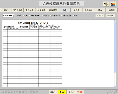 对于香料厨房的生产过程的物料流从仓库领料开始,经过人工备料、自动配料、人工配料、出料装桶,到向制丝线人工发料结束。要实现产品质量的全程追踪,必须在每个环节都建立完善的信息采集、记录,这样通过对全过程的数据统计、分析,可以获得与产品质量相关的所有信息。