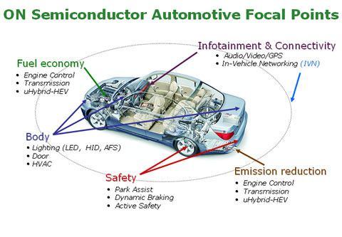 当今,随着西方汽车市场需求的复苏以及发展中经济体车辆数目的持续增长使燃料消耗和污染不断增加,政府和制造商都在积极探索改善燃油经济性以节约能源、减少排放的途径,汽车中越来越多的电子功能也使半导体元件在车辆中的比重不断激增。面对环保和丰富消费者体验的双重挑战,半导体制造商正在利用其技术专长开发各种符合汽车规范的解决方案。