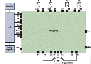 图5:用NCV7608支持单极和双极步进电机控制