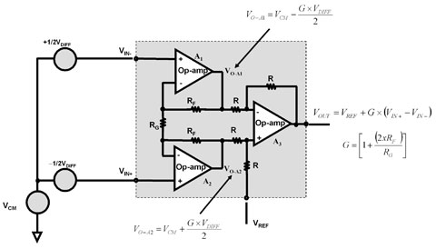 图 1 三运放仪表放大器