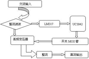 根据UC3842的特点,设计一个30~36V可调的开关型稳压电源,其总体结构框图如图3所示。