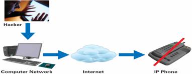 IP 电话是一种在 IP 网络中类似于计算机、服务器或网关的设备,因此也会受到畸形数据包 (malformed packet) 或数据包洪流 (packet flooding) 等 DoS 攻击,从而影响用户所预期的电话服务质量,进而导致服务完全中断。一旦安全性机制被 DoS 攻击所破坏,就会发生欺诈、服务滥用及数据被盗窃等较严重的安全漏洞。VoIP 服务的质量及其可靠性的高低取决于能否快速识别攻击,并在后续攻击进入 IP 电话等设备的进入点上隔离 DoS 流量。