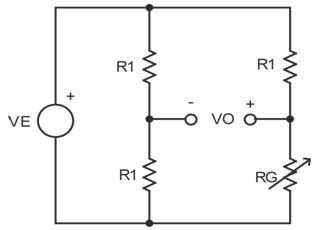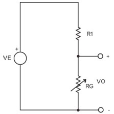 图 1 显示的是您如何使用一个分压器测量电阻。VE 表示激发电压。RG 值为: