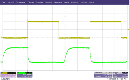 图 2 PWM驱动(顶部)高效地控制了 LED 电流(底部)