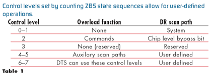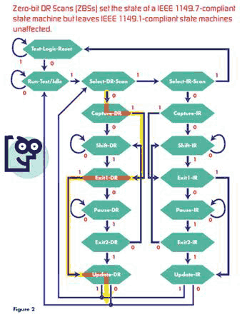 简而言之,这种创新型控制系统采用兼容于 IEEE 1149.1 的 TAP 状态序列和状态移动监视功能来创建控制系统,同时在确保符合 IEEE 1149.1 标准的芯片完全不受影响时采用零位 DR Scans (ZBSs) 来设置符合 IEEE 1149.7 标准的芯片状态。