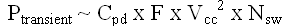 当门发生逻辑状态转换并产生内部结点充电所需的开关电流以及P 通道及N 通道同时暂态开启引起直通电流时,就会出现动态功耗。通过以下公式可以估算其近似值: