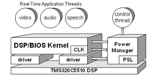 为满足上述的关键要求,可将电源管理器作为 DSP/BIOS 的附属模块被添加,如图 1 所示。