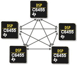 图 1. 在本例中,sRIO 能灵活地连接所有五个 DSP