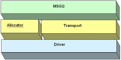 此外,MSGQ 还可支持消息的零拷贝传输,假定底层物理介质支持处理器间零拷贝。零拷贝基本说来就是指针传递 (pointer passing),而不是将消息内容拷贝到其它消息中。我们可在单个的处理器上完成上述操作,也可在共享存储器的多部处理器完成。由于能从特定集 (specific pool) 分配消息,因而我们能轻松地实现服务质量 (QoS) 特性,如针对关键资源提高性能、加快速度等。