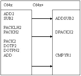 TI所推出的C64x+内核完全兼容C64x,这有利于基于C64x的程序向C64x+移植。结构上同样是64个通用寄存器,支持32bit、40bit、64bit的数据类型,也支持8bit和16bit打包数据类型,其中A0-A2,B0-B2都可做条件寄存器。其中一侧的功能单元(A或B侧)可以访问到另外一侧(B或A侧)的通用寄存器中的操作数。指令上兼容C64x内核的所有指令,而在其它性能上做了如下提升。