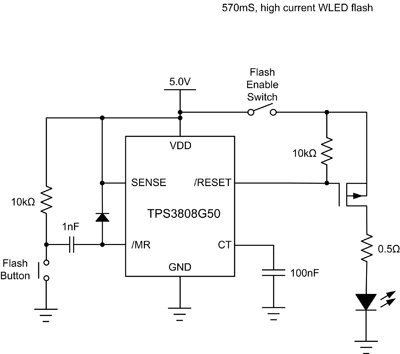 图 8. 使用电压监测装置的 WLED 闪光定时器