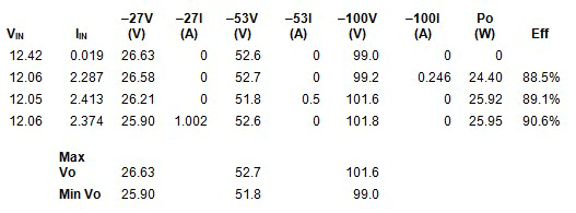 该表列出了极端条件负载极限的一些交叉调节结果。在本例中,利用流经 R17、R18 和 R20 的加权电流,输出电压同样也得到了调节。这样便聚集了误差,同时提供比 5% 更佳的极限交叉调节,其没有预负载或额外调节电路。通过增加该输出的加权,我们可以进一步改善一个输出的调节,从而负影响另一个输出的调节。