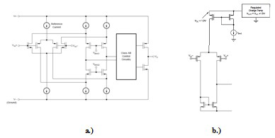 图 1 互补输入级、单电源放大器:a)。