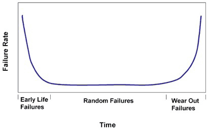 图 1 “浴盆”形曲线显示了半导体故障率随时间变化的情况