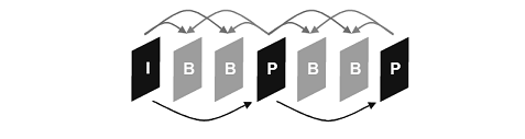 在视频编解码器中,单个帧可以采用三个模式中的一个进行编码 —— 即 I、P 或 B 帧模式(见图 3)。几个称为 Intra (I) 的帧单独编码,无需参考任何其他帧(无运动补偿)。某些帧可以利用 MC 编码,以前一个帧为参考(前向预测)。这些帧称为预测帧 (P)。