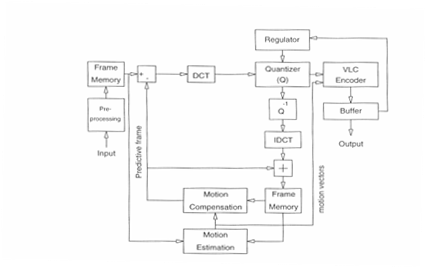 MC 之后的残差部分分为 8′8 的模块,各模块综合利用变换编码、量化编码与可变长度编码技术进行编码。变换编码(如:离散余弦变换或 DCT)利用残差信号中的空间冗余。量化编码可以消除感知冗余 (perceptual redundancy) 并且降低编码残差信号所需要的数据量。可变长度编码利用残差系数的统计性质。通过 MC 进行的冗余消除过程在解码器中以相反过程进行,来自参考帧的预测数据与编码后的残差数据结合在一起产生对原始视频帧的再现 。