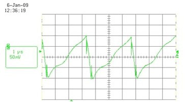 使用一个 470-μF 铝电解质电容替代 22-μF 陶瓷输入电容后,图 1 所示 Q4 上的峰值电压应力会从 26 V 增加到 29 V,正好低于其 30-V 额定值。另外,转换器的效率会从 85.4% 降至 83.1%,这是因为 234 mW 的输入电容 ESR 额外损耗。使用一个单 22-μF 陶瓷电容,但同电源开关的距离增加 0.5 英寸(1.2 厘米),这时我们看到峰值开关电压出现相同上升,而效率并未下降。