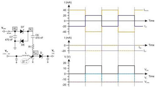 外部充电泵的优势在于性价比高,且为用户提供了极大的灵活性。采用独立的升压转换器(例如 TI 的 TPS61085 或 TPS61087)以及仿真工具 TinaTI? 进行辅助设计,可以很轻松地获得大功率的正/负充电泵。
