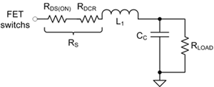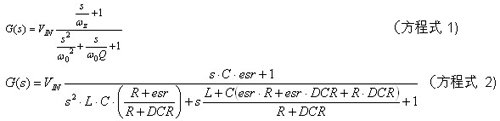 图 1 显示了一种典型的电源应用。从开关节点到输出的传输函数适用方程式 1 的形式,其带有数个如方程式 2 所示的无源损耗元件。[3]