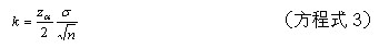 其中,σ 为预计总体标准差,n 为采样量,而 za/2 则为采样平均值在可靠区间内的双面概率 (double-sided probability)。za/2 的一些典型值为 95% 时的 1.96,99% 时的 2.58,以及每十亿分之二时的 6.0。[2]