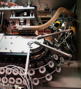 每分钟高达500只管筒的检查能力,高性能TFS 80-6生产线在记录时间内完成检查、填装并且密封牙膏管。如果一个人节约使用牙膏的话,每分钟的产量足够其一生清洁牙齿之需。与使用一个旋转台运行的传统管筒填装机器相比,TFS 80-6有一个成对角线布局的传送电路。工艺流水线相互之间成直角布置,从而可以水平地捡取管筒、垂直地清洁、填装和密封,然后水平地放下至传输带上,送到一台制盒机进行较后的包装。