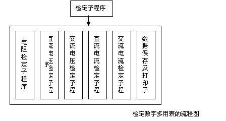 由于本系统所要完成的检定/校准的对象比较多,参数范围广,不便于一一列举,在此仅以通用设备的数字多用表为例,介绍其检定/校准程序的实现过程。数字多用表的参数检定一般包括:直流电压、电流,交流电压、电流以及电阻等的检定。由于不同类型的数字多用表其功能范围和准确度不同,需要对检定/校准程序做出不同的调整,分别根据数字表的使用说明书选择各个范围的量程,采用计算机对5520A进行控制使其输出相应的标准校准信号,通过GPIB卡将标准数据传入被校的数字表,然后对数字表所指示的数据进行存储,并且与标准数据对比,从而可以给出各个量程的检定结果,判断其是否符合技术指标要求,较后给出相应的检定/校准证书或测试报告。检定数字多用表的流程图如下图所示: