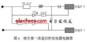 的充电电流相应也比较大,对电池的寿命有较大影响,而且电瓶的耗电量大。图4是改造后的充电器座电路图。